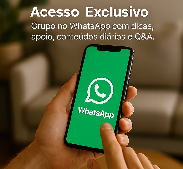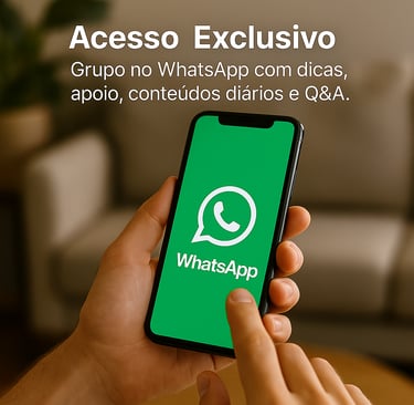 Grupo no WhatsApp com dicas, apoio, conteúdos diários e Q&A.